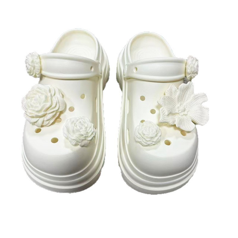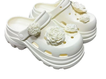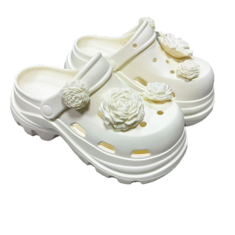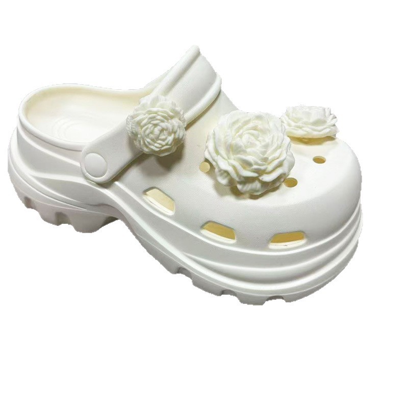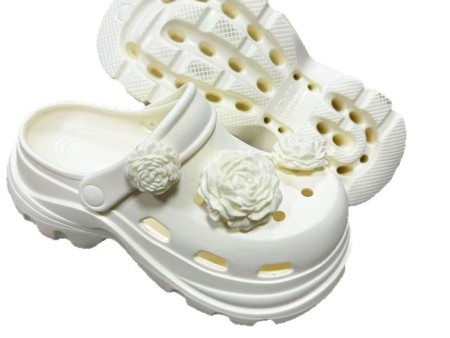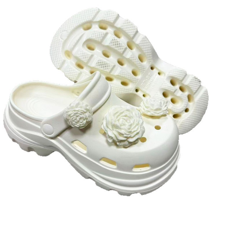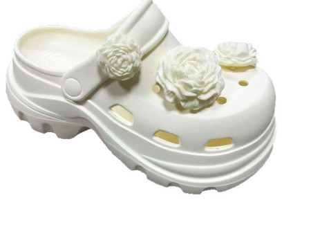 6710 白玫瑰花饰扣增高洞洞鞋35-40